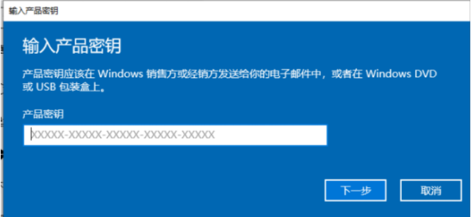 2、此时输入win10专业版密钥,点击下一步。