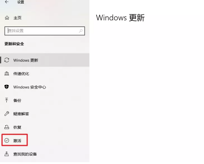 2、在“设置面板”界面中,找到并鼠标点击“更新和安全”——“激活”。