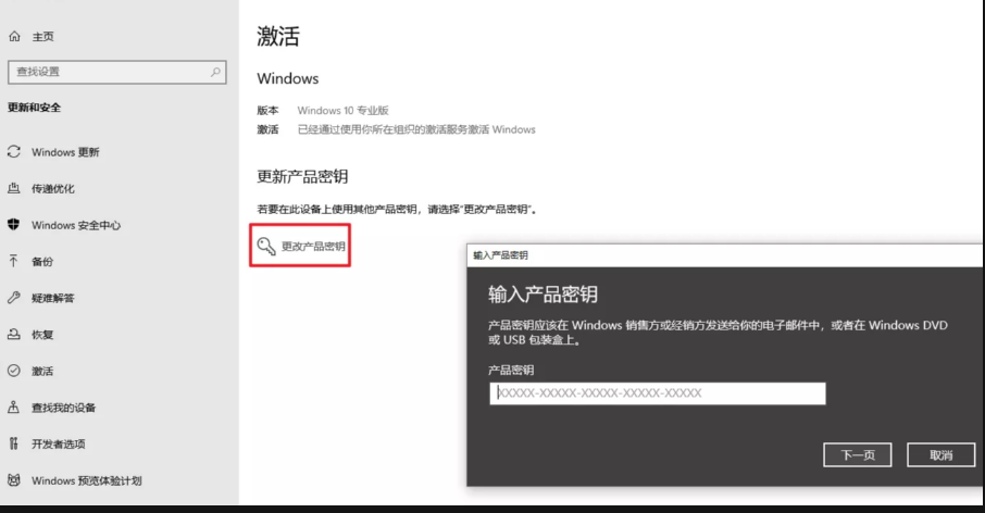 4、最后再点击“更改产品密钥”,输入以下任意一个密钥,即可成功激活。