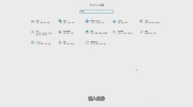 在win10的设置界面里,输入备份,点击下方的备份设置。