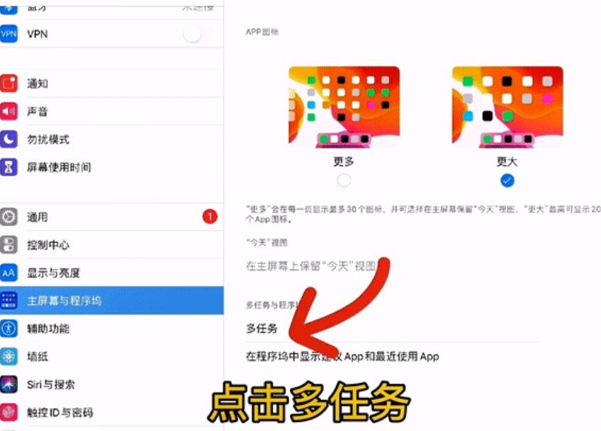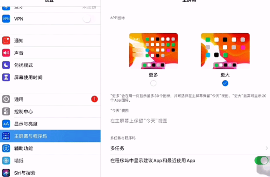 1、打开iPad自带的设置功能,然后点击打开主屏幕与程序坞。