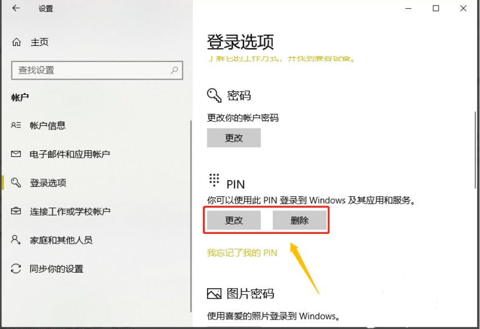 如果我们之前已经设置过PIN码,那么以上界面则会是下图的"更改"或者"删除"选项了。
