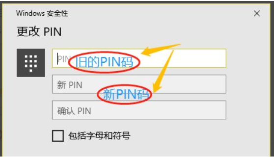 如果是想更改,那么点击"更改"以后,在新的页面按照提示首先输入旧的PIN码,然后连续输入两次新的PIN码即可更改完成。