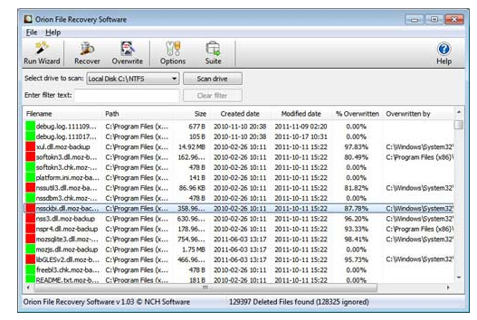 Glary Undelete将按需去深度扫描您的驱动器中是否有已被删除的文件,并向您显示每个已删除文件的属性及其所处的状态,以方便您估计对其恢复的可能性。也就是说,您可以通过其过滤和扫描的结果,来获悉被查找的文件,并按照可被恢复概率,对它们进行排序。