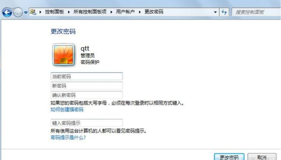 6.点击更改密码,切换窗口密码修改页面,如图。