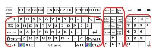 2.左侧大区域叫主键盘区,也叫字母键区,中部叫控制键区,右侧叫数字键盘区。