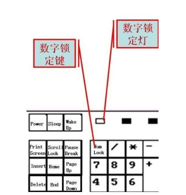 5.Num Lock叫数字锁定键,按一下,右侧第一个灯亮起来,这时数字键盘上的功能为数字功能,可以打数字。再按一下,灯灭了,这时变成控制区的功能,每个数字键上会印有对应控制区的英文说明。