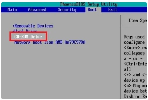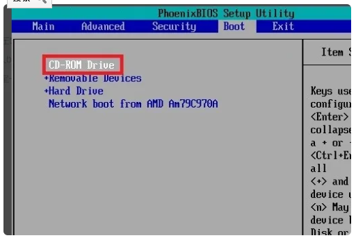 4、连按两下键盘上的"+"键,使CD-ROM Drive(光驱)位于最上方。