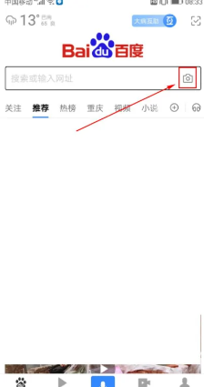 2、进入搜索界面,在百度搜索栏里点击一个小相机的图标。