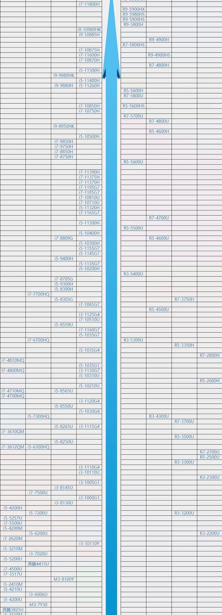 周所周知cup是电脑的核心,电脑处理性能的高低主要体现在它的身上,很多网友想跟换自己的电脑,在更换想了解下笔记本cpu性能排名,下面小编就跟大家分享下cpu天梯图笔记本2022最新版,供大家参考。