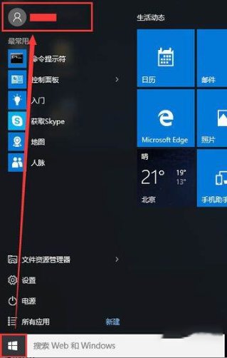 2、然后在开始菜单点击最上面的账户名称。