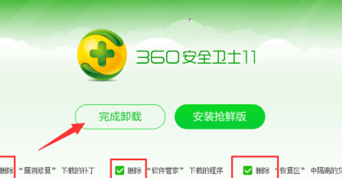 13、将三个方框打上勾,以免残留垃圾软件。然后点击“完成卸载”:卸载后可进行重启操作,以便彻底删除有些文件。