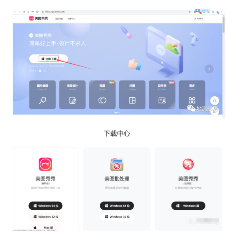 1、在官网上搜索美图秀秀软件,进入官网页面中点击立即下载。