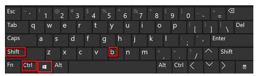 3、如果依旧没有反应,请同时按下Windows + Ctrl + Shift + B键。该组合键专门设计用于在登录后将系统从黑屏中唤醒。