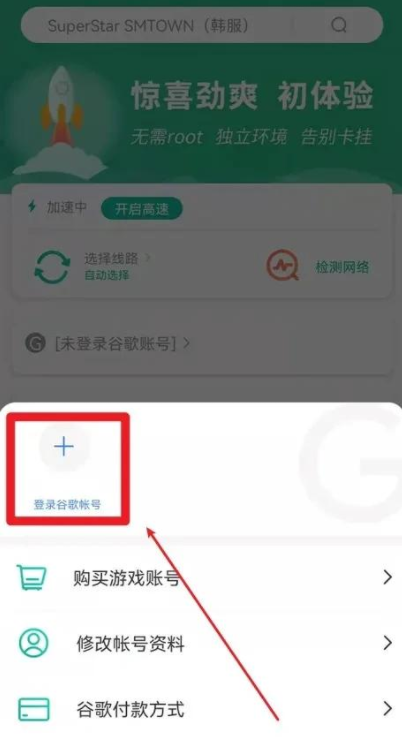 5、返回到OurPlay软件内,再次点击 “未登录谷歌账号” 。