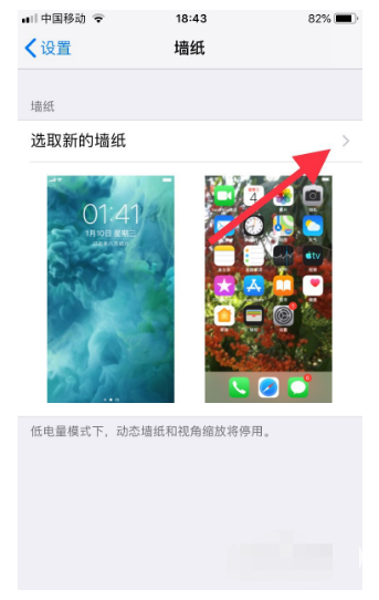 3、进入设置墙纸界面后,点击【选取新的墙纸】。