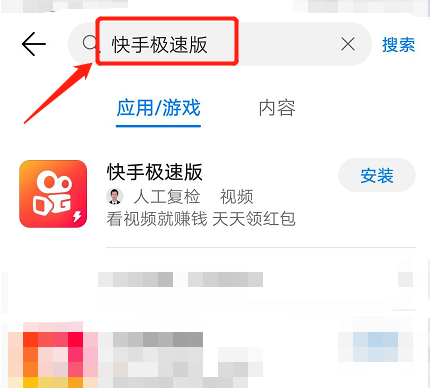 2、在顶部搜索栏中输入”快手极速版“进行搜索。