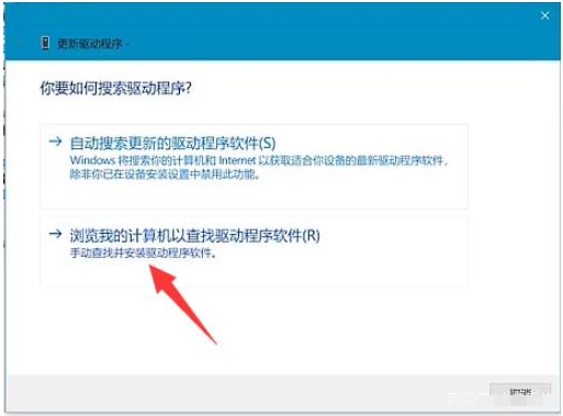 3、建议选择浏览我的计算机以查找驱动程序软件(手动查找并安装驱动程序软件),联网的情况下也可以自动搜索更新驱动。