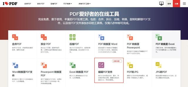操作步骤:在浏览器中搜索并打开该网站,在首页选择“编辑PDF文件”功能,上传需要编辑的PDF文件。