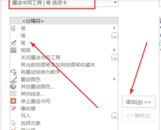 4、在墨迹书写工具命令下选择笔添加即可画图。