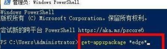 2、输入“get-appxpackage *edge*”回车键确定。查找到edge浏览器的安装包名字。