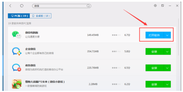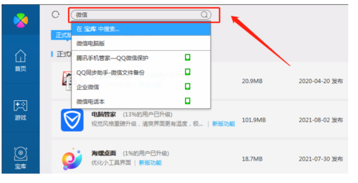 1、首先在电脑桌面打开软件管家,在上面的搜索栏输入“微信”。