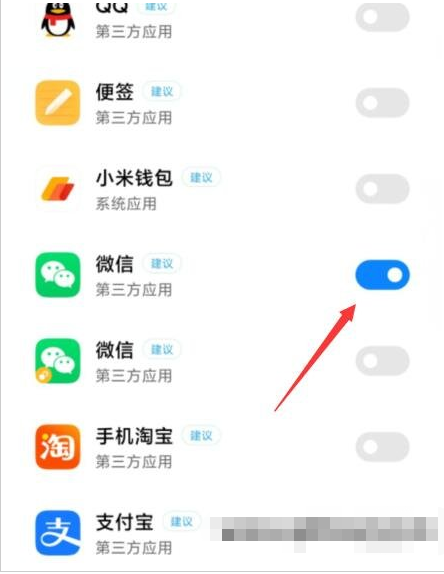 3、选择我们需要加密的应用,点击右侧的按钮开启;