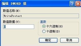 5、然后在点击WriteProtect。 把WriteProtect的数值数据设置为0,然后点击确定之后插入U盘即可。