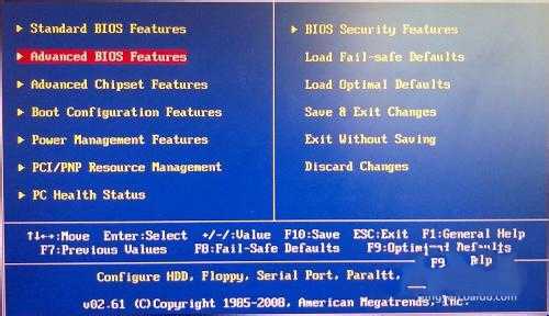 开机后,出现画面快速按下“Delete”键进入BIOS画面,按方向键“↓”选择“Advance BIOS Features”然后再按Enter键。接下来画面请看图,按方向键“↓”选择“First Boot Device”再按Enter键弹出一个长方形框,按方向键移动到“USB HDD”再按Enter键,然后再按“F10”键保存。