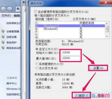 7 把自定义大小下的“初始大小”和“最大值”都设置为12099MB,这样更稳定。