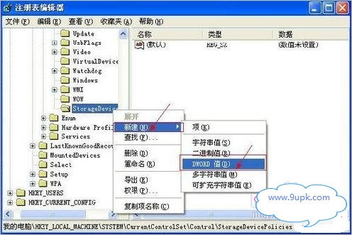 查看U盘目录下的文件数是否达到最大允许值,运行regedit.ext,进入注册表编辑器,依次找到HKEY_LOCAL_MACHINE\SYSTEM\CurrentControlSet\Control\StorageDevicePolicies(如果没有StorageDevicePolicies,则可以新建一个,方法是:右键单击Control选择“新建”,选择“项”,输入StorageDevicePolicies即可。