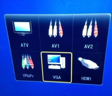 3、用电视机的遥控器选择的信号源为VGA或者HDMI,(根据数据线来进行选择)