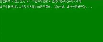 第三步:下面将对您选择的U盘进行格式化操作了(注意:确保您使用的U盘上没有重要的数据,格式化之后,先前的所有数据将会丢失),根据提示直接按任意键就可以开始格式化