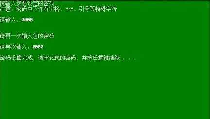 第七步:根据中文提示,系统要求为您的引导U盘设置一个启动密码(随便输入如:0000,这个步骤必不可少,不管您愿不愿意,都得输入一串密码的,否则无法继续操作),确保两次输入一致,牢记密码就可以了,还是任意键继续操作