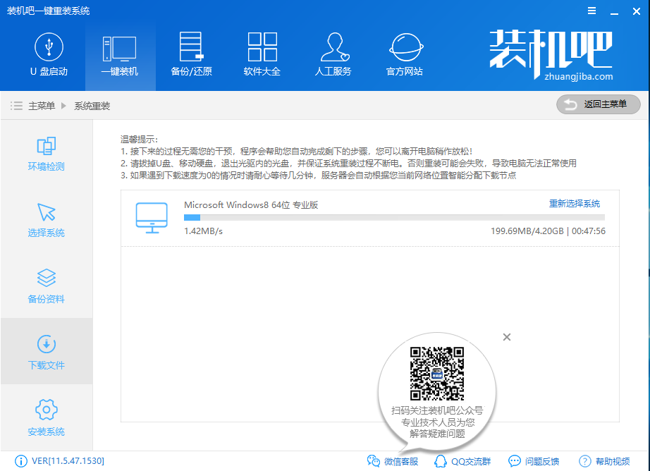 下面是壹号本电脑一键重装系统win8具体操作步骤,以装机吧一键重装系统软件为例。