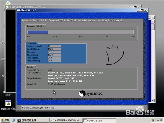 第六步,按任意键开始复制系统,复制完后系统会自动重启,如何重装系统xp也可以用这个方法。