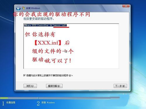 如果以上操作都没问题会出现如下图,点【下一步】,可能你也会弹出【加载驱动程序】的一个弹窗,如果有,就点【确定】,然后【重新扫描】一下,选择出现的【XXXXX.inf】的一个驱动文件,这里你的可能会与我的例子不同,但是选择这个后缀的没错!如果出现多个!那一个一个试吧!