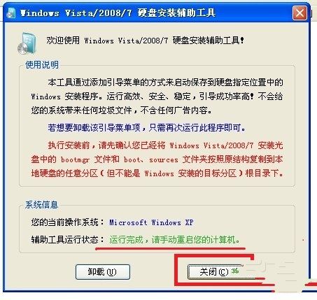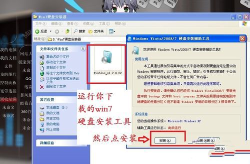 把下载好的win7硬盘安装工具解压后运行里面的【Win6Ins_v1.2.0.62】这个文件,点击【安装】,待出现绿色的【运行完成,请手动重启您的计算机】后就重启开始安装吧!~