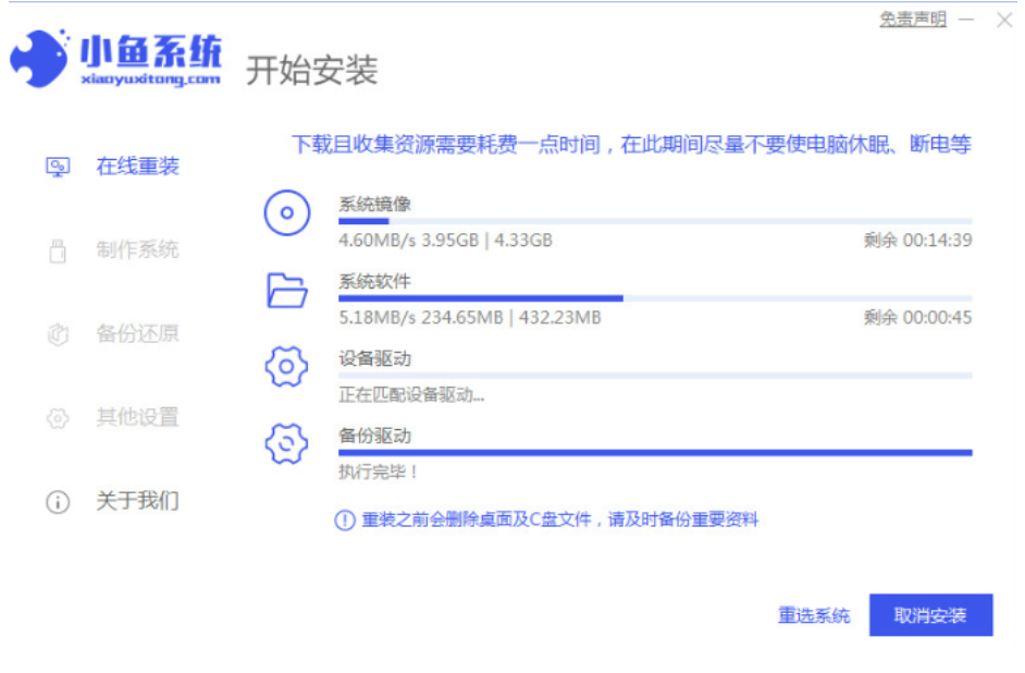 3、软件会自动开始下载系统镜像资料和驱动等,无需操作。