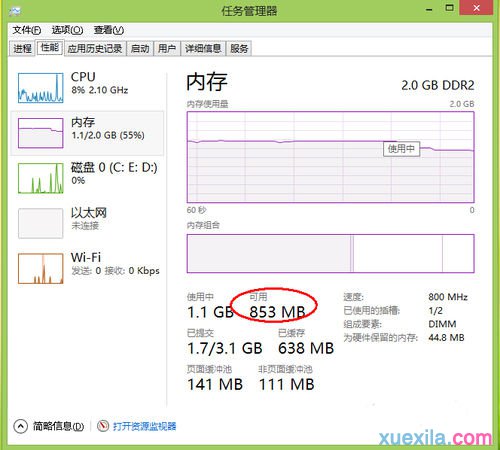 2.从这里可以看出来,我的内存可能空间不多。所以当我继续再打开另外一些程序的话,可用内存会越小,然后系统的反应也会越来越慢。