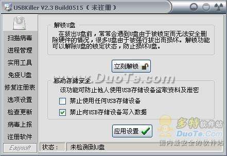 USBKiller的主要功能有:杀U盘病毒,加密U盘和解密U盘,给U盘打个免疫针让病毒不再感染。