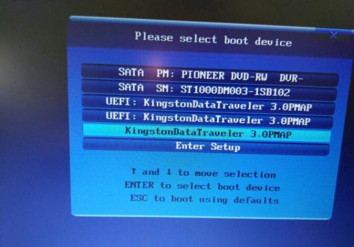 4、插入U盘启动盘,重启时不停的按下f12,打开快速引导菜单,选择识别的U盘启动回车从U盘启动,如图: