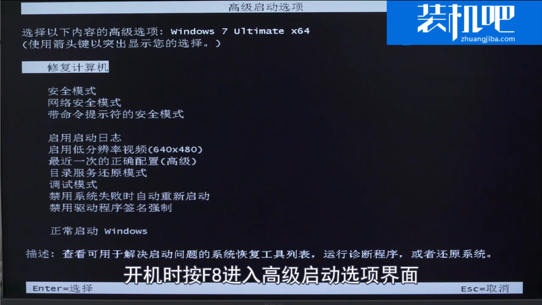 1、我们可以尝试用安全模式恢复,电脑强制关机,然后按下开机键,开机时不停的按F8键进入到“高级启动选项”界面,然后选择进入“安全模式”。