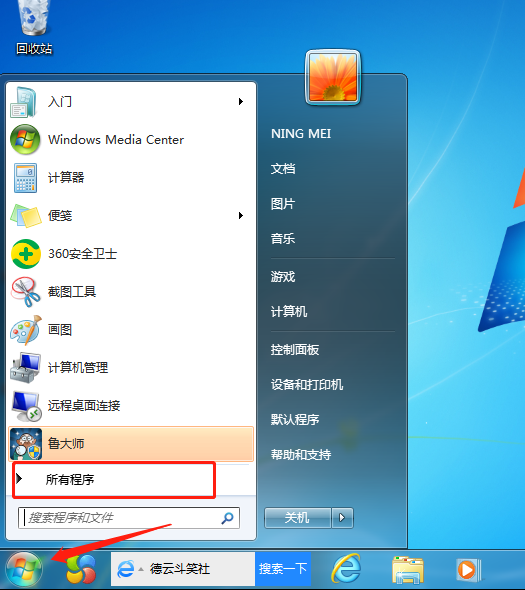 1、首先,点击电脑的开始菜单,之后选择所有程序。