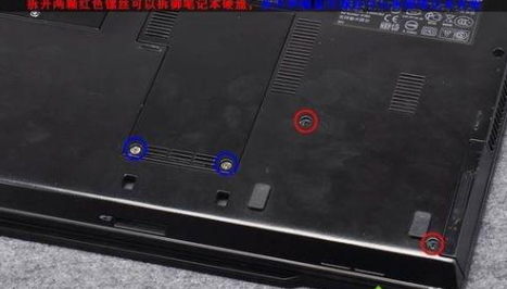 1、首先拆下笔记本电脑的四个螺丝,以便对硬盘和光驱进行拆御。
