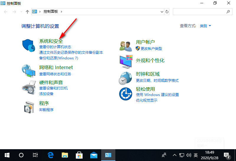 1、首先双击打开控制面板,进入“系统和安全”。