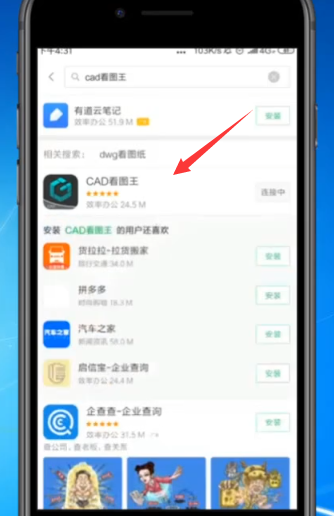 1、首先在应用商店搜索CAD看图王进行下载安装,完成后打开便可。