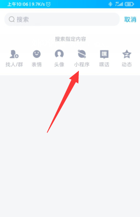 1.点击QQ聊天对话框上的搜索栏,点击小程序。