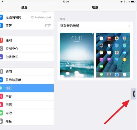 1、在右侧边缘向左拖动,可以看到类似于通知栏或者控制中心的小箭头。
