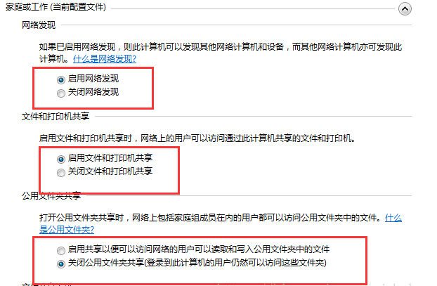 1、在控制面板——>网络和共享中心——>高级共享设置,打开后按如下设置。